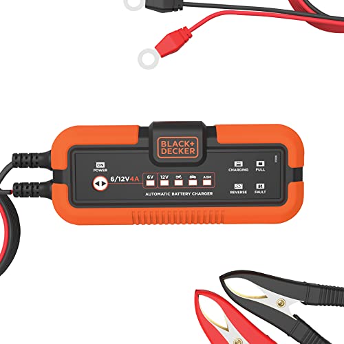 BLACK+DECKER BXAE00022 Mantenitore l'uso in sistemi 6V e 12V. Carica bagnate da 6 e 12 Volt. Compatibile con Le Seguenti batterie al Piombo: AGM, Gel, VRLA, Wet, Liquido, Orange und Schwarz, 4A-6V