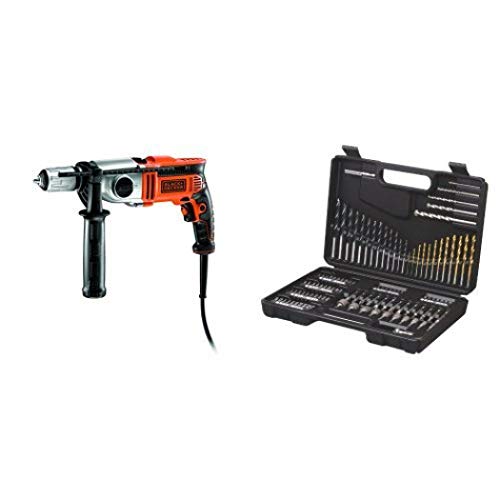 BLACK+DECKER KR1102K Trapano a Percussione, 1100 W + A7200-XJ Titanium Set per Forare ed Avvitare, 109 Pezzi