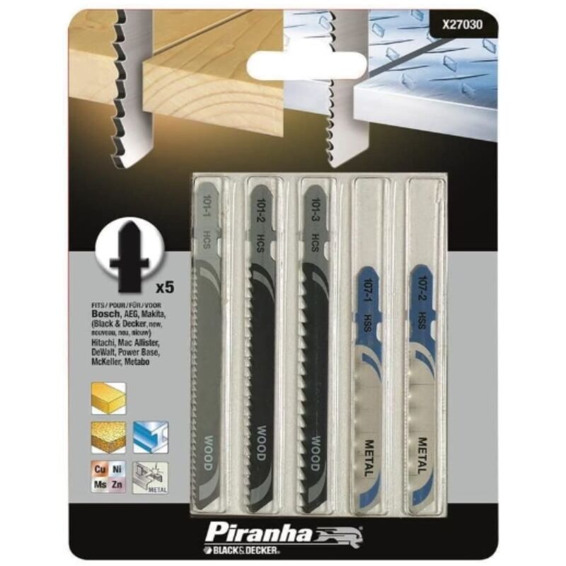 Black&decker - piranha - 5 lame miste per taglio metallo e legno 100/76mm - con attacco ad t