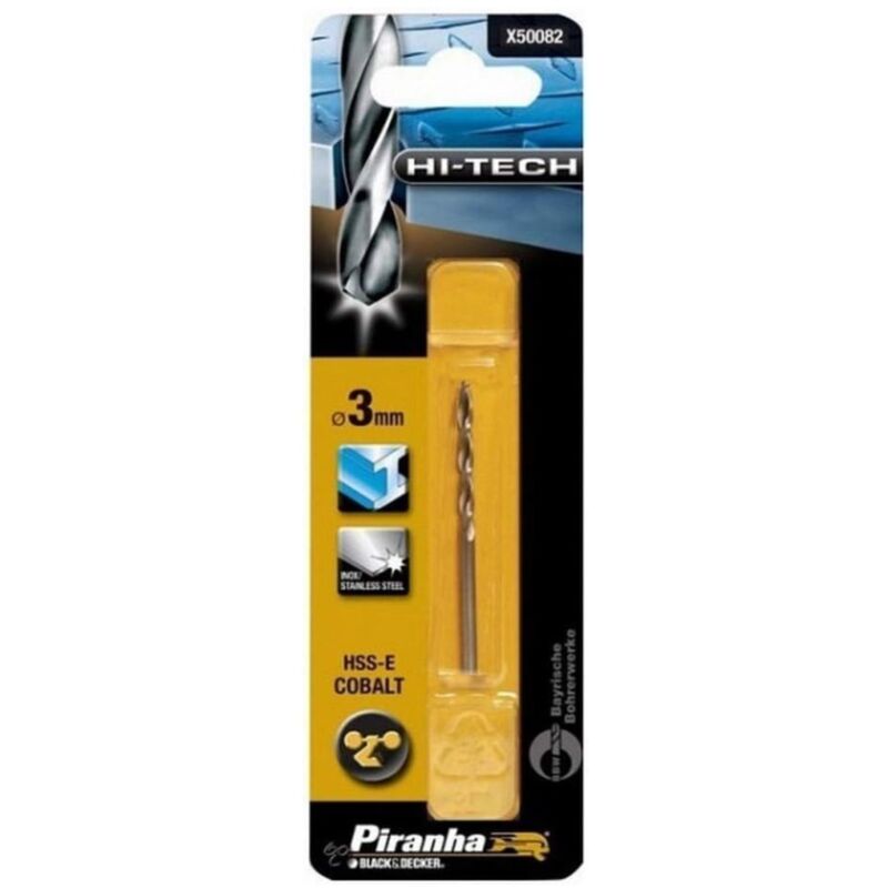 BLACK&DECKER - PUNTA PER TRAPANO COBALTO 3MM Punta Cobalto, diametro 3 mm Progettata per i metalli molto duri, in particolare acciaio e ghisa, ottima anche su metalli morbidi Prodotta con acciaio legato a cobalto alta qualità per una resistenza elevata Utilizzare un lubrificante in fase di foratura
