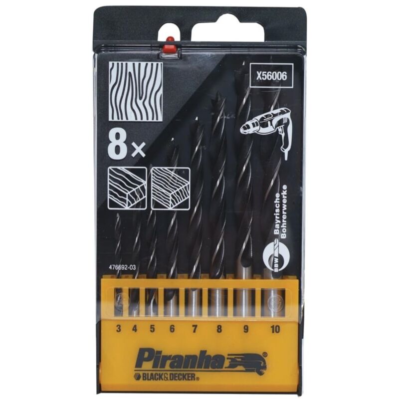 BLACK&DECKER - SET 8 PUNTE ELICOIDALI 3-10MM Il set è composto da 8 punte a spirale per legno con un diametro di 3, 4, 5, 6, 7, 8, 9 e 10 mm.