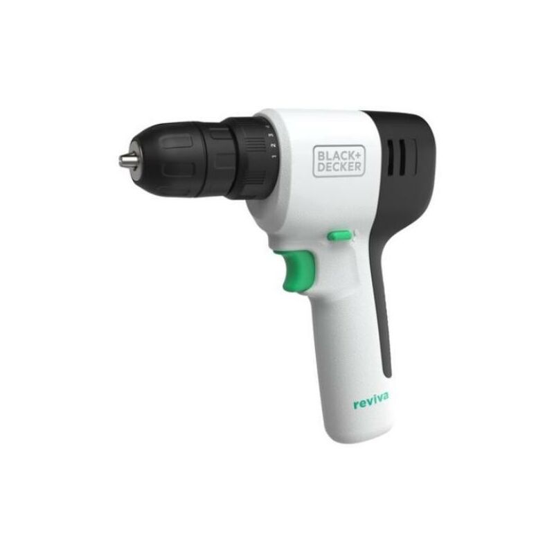 Trapano/avvitatore/percussione Black & Decker Reviva a batteria 12V - REVHD12C-QW Un trapano, avvitatore a percussione 12V a batteria contiene una quantità di materiale riciclato, equivalente a 8 bottiglie di plastica da 0,5l. Per tutti i lavori Fai Da Te, una coppia massima di 40Nm per forare facilmente su muratura e calcestruzzo. Due velocità meccaniche: bassa velocità per un'avvitatura controllata e alta velocità per forare su legno e metallo. Volt 12V Batteria Lithium ion 1.5 Ah Velocità 0-350/ 0-1350 / min (RPM) Mandrino autoserrante 10mm Batteria inclusa: Si Voltaggio: 12 V Capacità della batteria: 1,5 Ah Fonte di alimentazione: Batteria Modello: REVHD12C-QW Numero di batterie: 1 Tipo di mandrino: Senza chiave Quantità: 1 Inserzione bundle: No Potenza