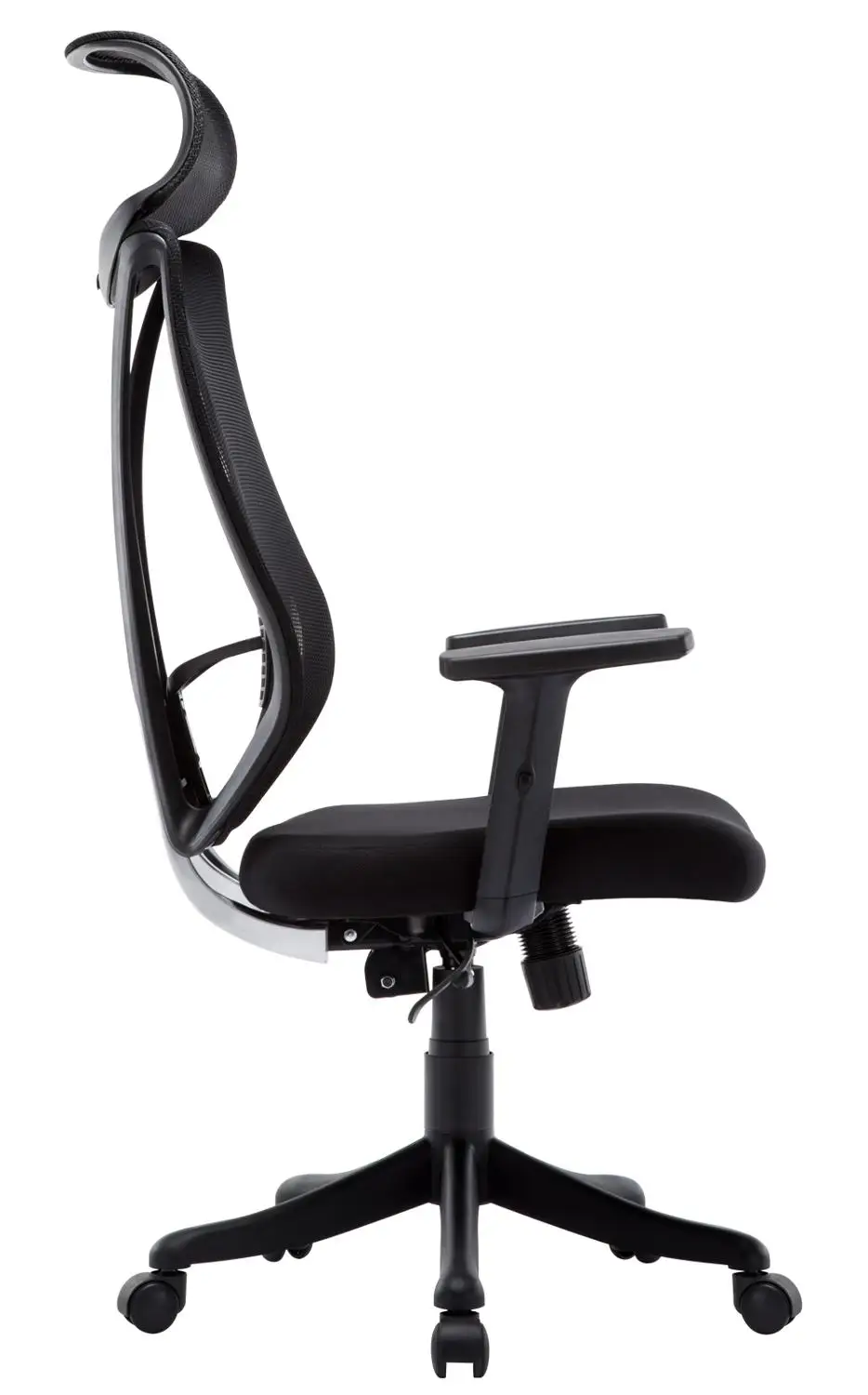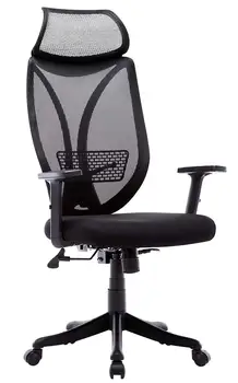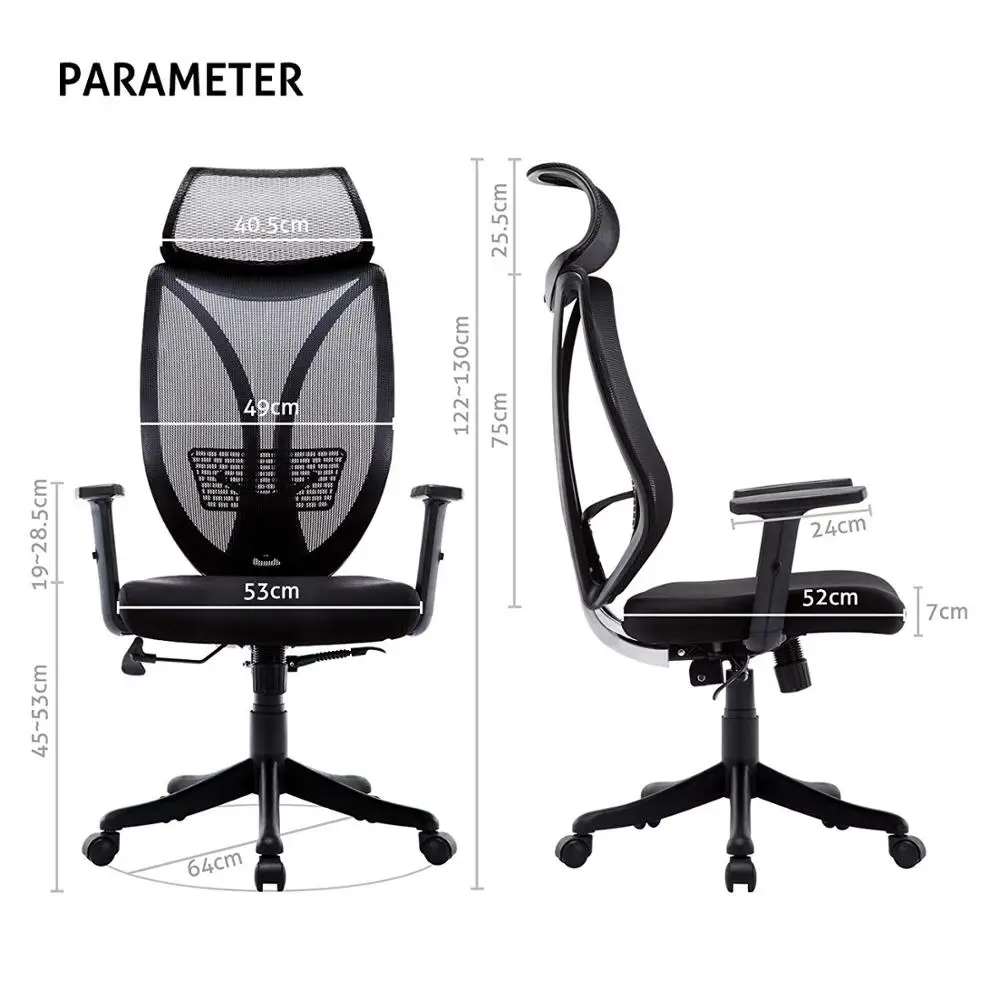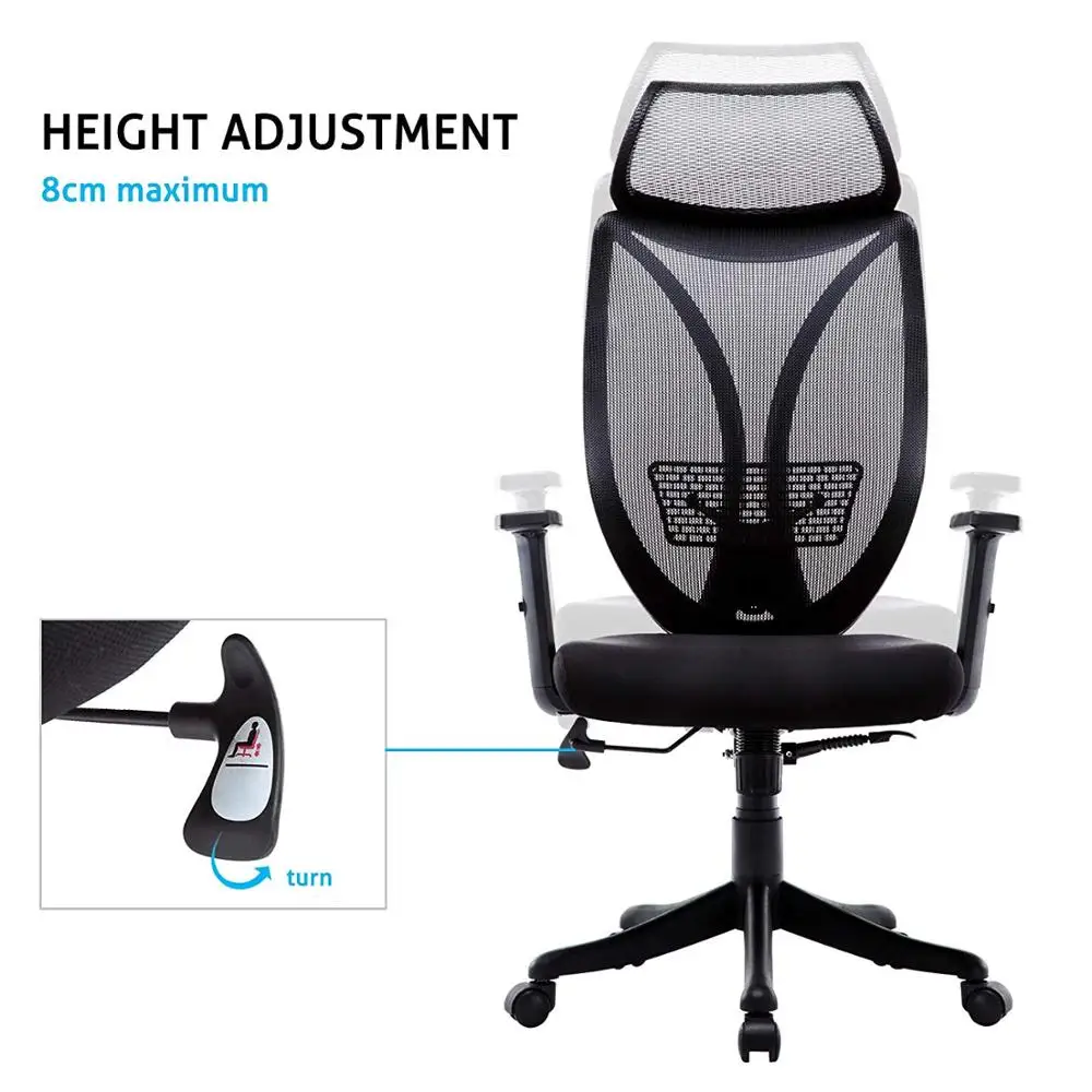 Black Executive Office Chair Ergonomic Mesh High Back Padded Chair Foldable Armrest Head Support Adjustable Swivel Chair