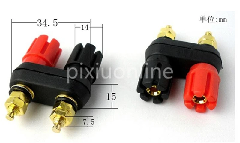 1pcs Red and Black YT1 4mm Gold-plated Pure Copper Double Output Terminal Banana Socket for Power Amplifier Speaker Free Shiping