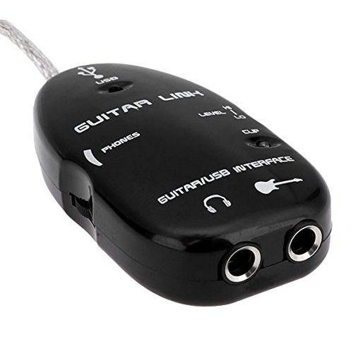 Black Easy Plug and Play Guitar Link to USB Interface Cable for PC and Video Recording 24