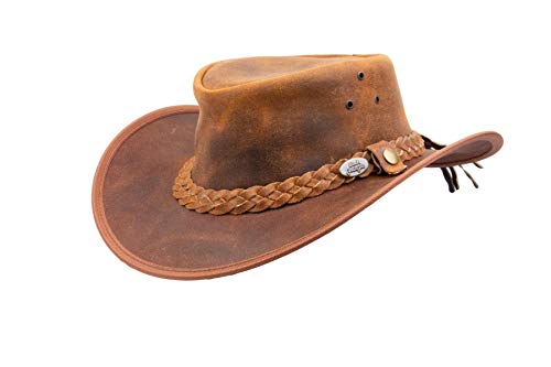 Black Junge Bulat Cappello in Pelle, Cappello Occidentale, Cappello Australia, Cappello da Cowboy (ocra, XS)