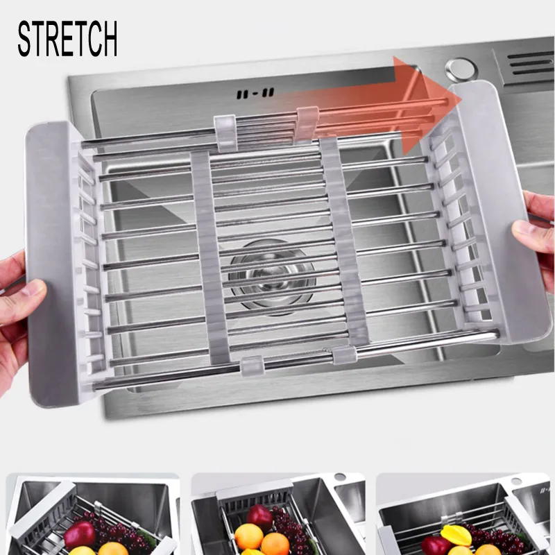 Black Kitchen Sink Strainer Basket 304 Stainless Steel Sink Drain Rack Washbasin Dish Basket Retractable Filter Sink Protector