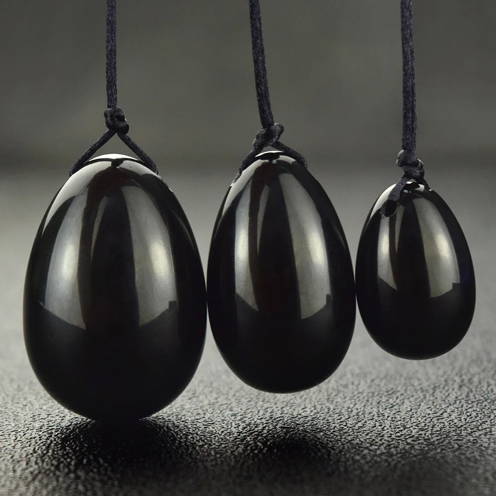 Black Obsidian Yoni Egg Natural Jade Massage Crystal Stone for Kegel Exercise Vaginal Muscle Massage Ben Wa Balls
