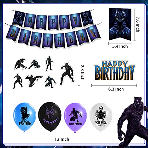 Black Panther Theme - Decorazioni per feste di compleanno HAFTSS, include striscioni Happy Birthday, topper per torte, cupcake, palloncini in lattice, per fan e ragazzi