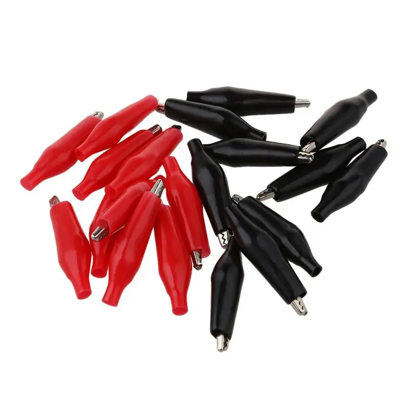 20 Pcs Black Red Soft Plastic Coated Testing Probe Alligator Test Clip