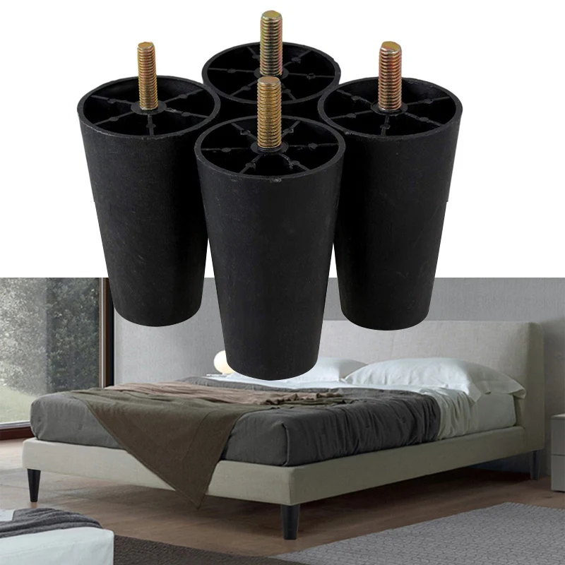 4PCS Black Plastic Round Furniture Legs Replacements Table Sofa Bed Carbinet Feet with Iron Plates Screws