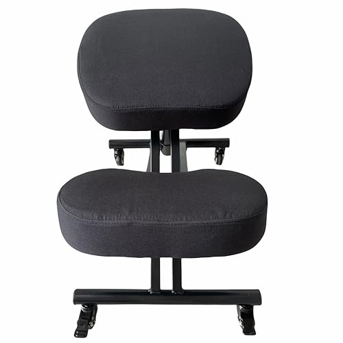 BLACK POINT Sedia Ergonomica Inginocchiata O'KNEEL Basic fatto di lino per Ufficio, Sgabello Regolabile per Casa E Ufficio. Sedia Ergonomica posturale (rivestimento in lino nero incluso)