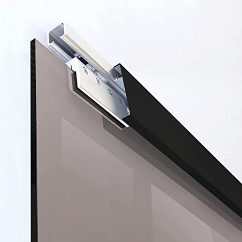 La porta scorre sulla parte superiore della guida scorrevole, coperta da una copertura decorativa in alluminio nero opaco. Di conseguenza, sul pavimento non avrai altro che una guida di 5 cm montata all'angolo della porta.
