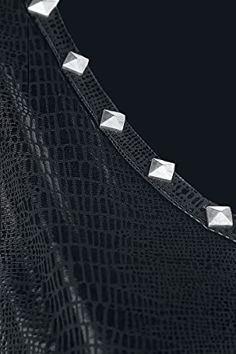 La maglia è un set di due pezzi, per questo può essere indossata anche separatamente. Il top ha un look in similpelle e borchie a piramide sulle spalline.