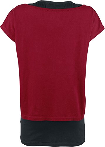 Black Premium by EMP Donna T-Shirt Nera e Rossa a Doppio Strato