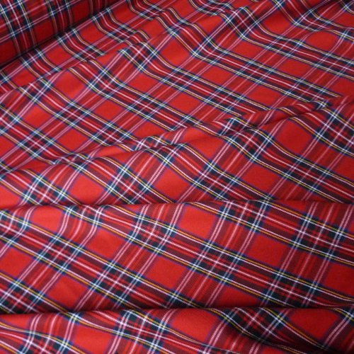 Red & Black Royal Stewart Poly-Viscose Tartan Fabric (Per Metre) by Nortex Mill