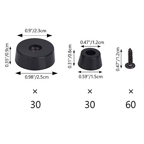 60 Pcs Black Rubber Foot(2-Size),YuCool Screw Fixed Rubber Feet With Matching Screws and Built in Stainless Steel Washer for Protecting Furniture from Moisture and Floor Scratches