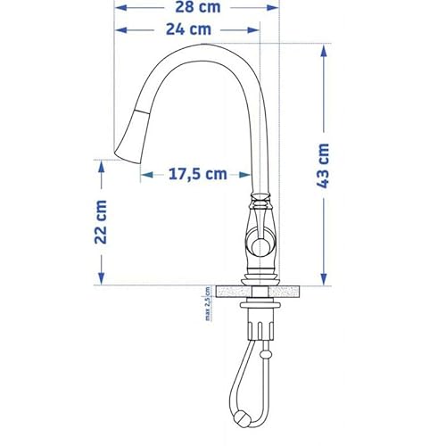 Rea DECO OLD BLACK RUBINETTO CUCINA ALTO Miscelatore lavello cucina in ottone Miscelatore monocomando caldo e freddo regolabile girevole a 360° (Nero opaco)