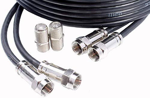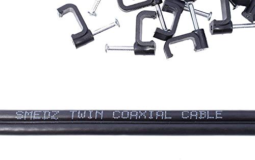 30m Black Twin Satellite Cable Extension Kit For Sky+, HD, Allows You To Relocate Your Existing Box, Kit Consists Of 30m Sky Double Coax, 30 x Cable Clips, 4 x F-connectors, 2 x F-connector Couplers