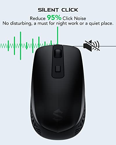 Black Shark Mouse Wireless Silenzioso Silent Ricaricabile Mouse Mouse Senza Fili 1000,1200,1600 DPI, Riduzione Rumore fino a 95%, Clic Mute Per Computer PC, Mac, Laptop 2.4 GHz USB Mouse Ergonomico