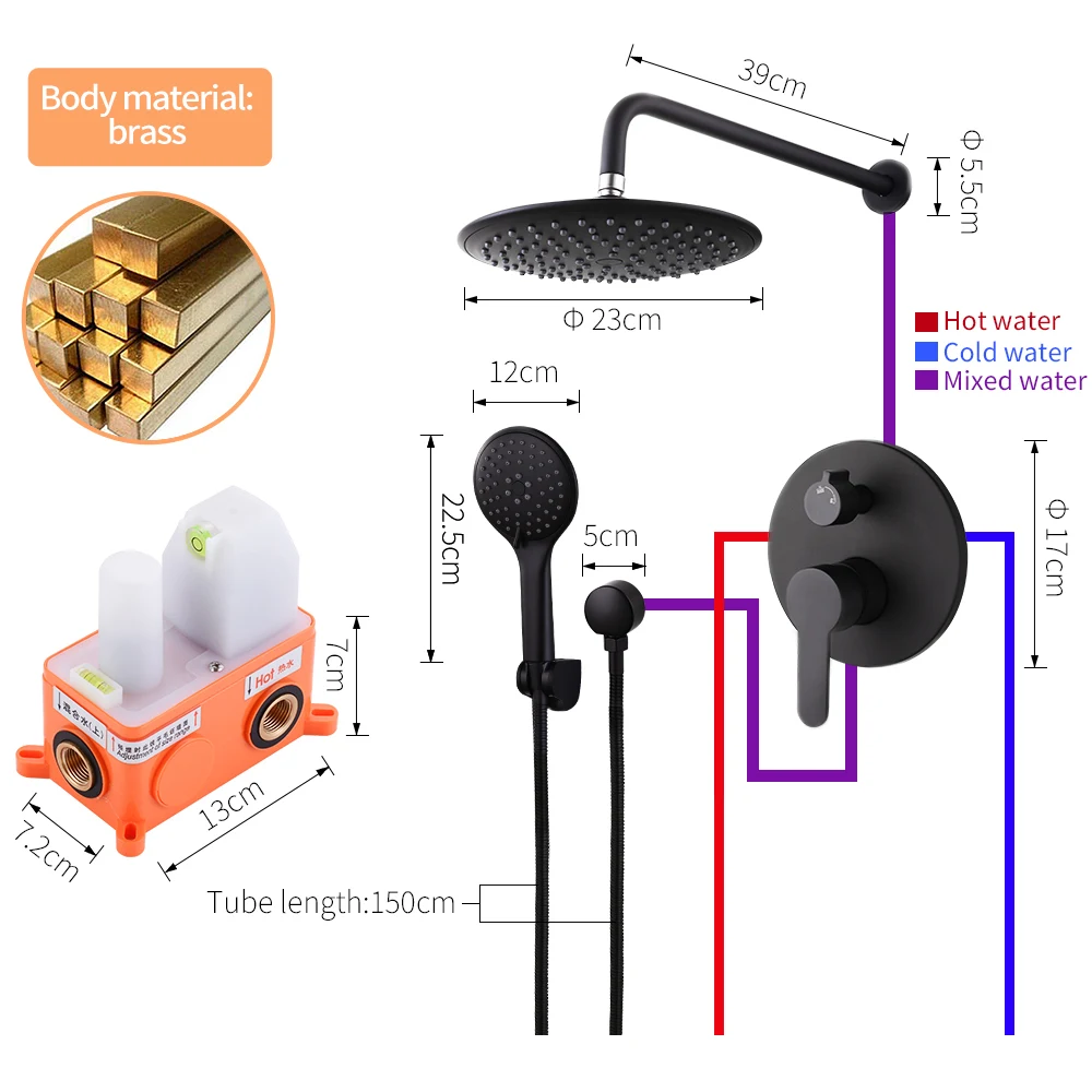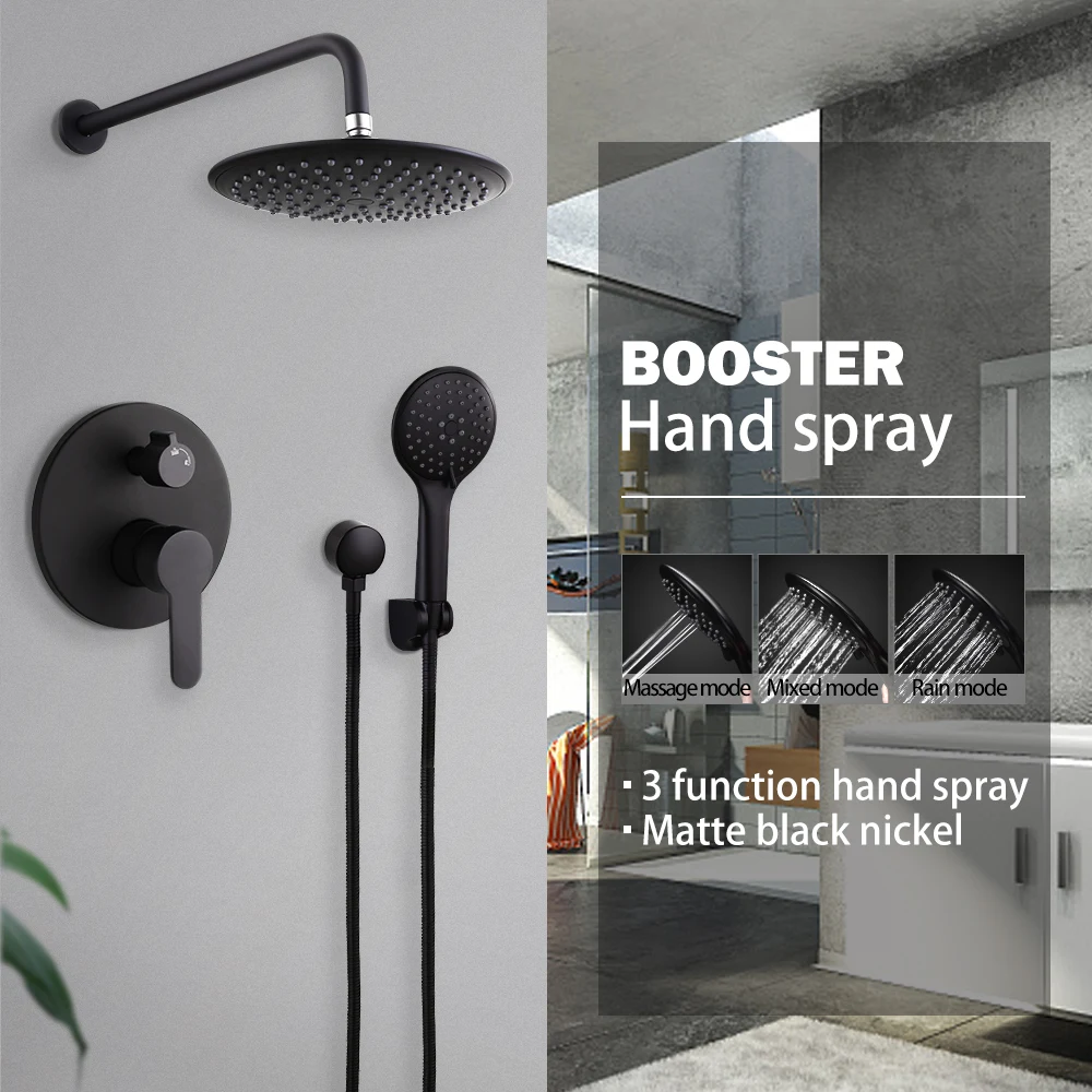 Black Bath Shower Set with 10 Inch Shower Head Wall Mounted Shower System Shower Set Diverter Mixer