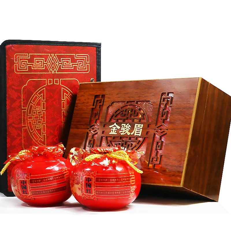 Jin Jun Mei Black Tea Solid Wood Ceramic Gift Set Fujian Mountain Tongmuguan Red Tea 200G