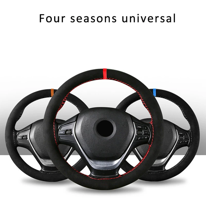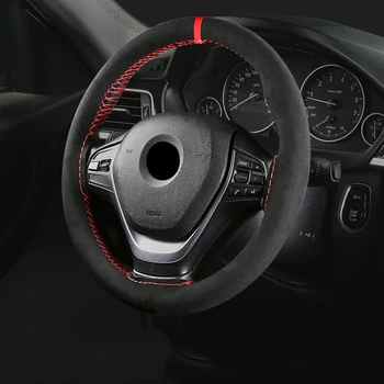 Black Suede Braid On Steering Wheel Car Steering Wheel Cover Diameter 14.6inch / 35-37cm Auto Car Accessories