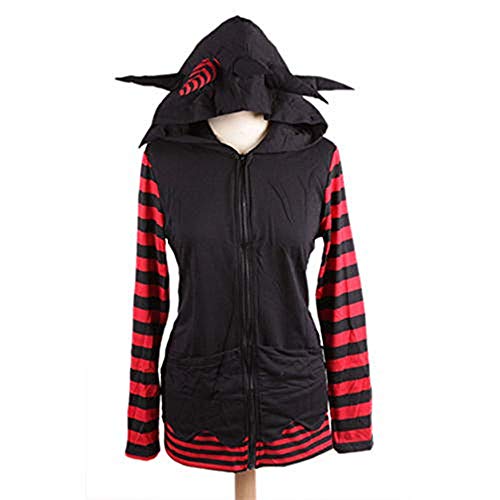 Black Sugar Felpa con cappuccio a righe con angelo, gotico, punk Emo Cosplay unisex, con orecchie e corno, taglia unica