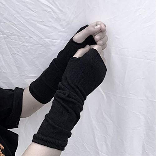 Black Sugar Paio di guanti in lana a forma di mitana, stile gotico, colore: nero, caldo, con manico senza denti, nero, Taglia unica