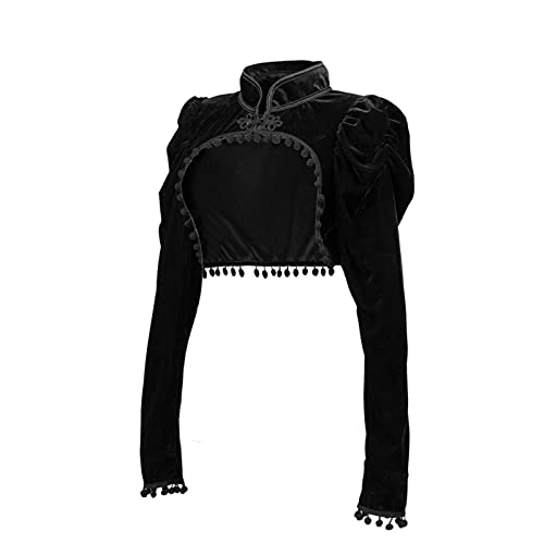 ZVBW Black Velvet Breve Steampunk Crop Giacca Giacca Stand Lunge Manica Autunno Donne Gothic Bolero Cappotto Victorian Cappotto Vintage Corset Accessori