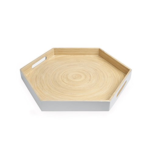 Black Velvet Studio Bamboo Vassoio Lucido Grigio Naturale Esagonale - Insalata di Frutta Retro Stile Etnico Nordic Modello Cannes 4 * 40 * 34 Centimetri.