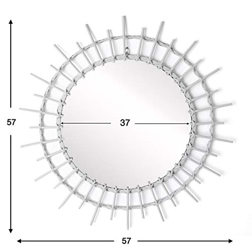 Black Velvet Studio Specchio Aloha da Parete Decorativo Rotondo, Rattan Naturale, Boho Chic, Stile Etnico, Leggero, per Bagno corridoio o Ingresso, Rattan, Colore Bianco, 57x57x2 cm.
