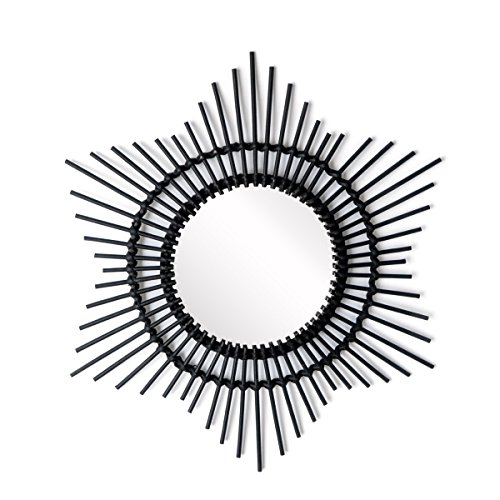 Black Velvet Studio Specchio Hawai da Parete Decorativo Rotondo, Rattan Naturale, Forma di Stella, Boho Chic, Stile Etnico, Leggero, per Bagno corridoio o Ingresso, Rattan, Colore Nero, 52x52x2 cm.