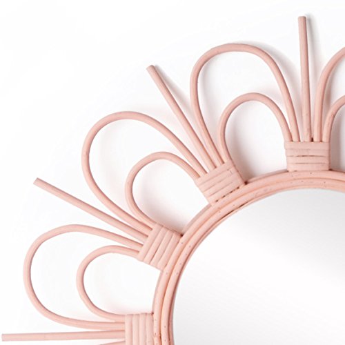 Black Velvet Studio Specchio Flor da Parete Decorativo Rotondo, Rattan Naturale, Boho Chic, Stile Etnico, Leggero, per Bagno corridoio o Ingresso, Rattan, Colore Rosa, 43x43x2 cm.