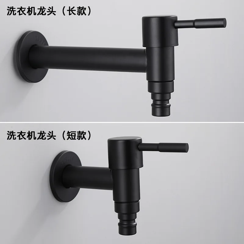 Black Washing Machine Mop Water Tap Modern WC Single Cold Faucet Black Faucet Tub Laundry Room Water Faucet