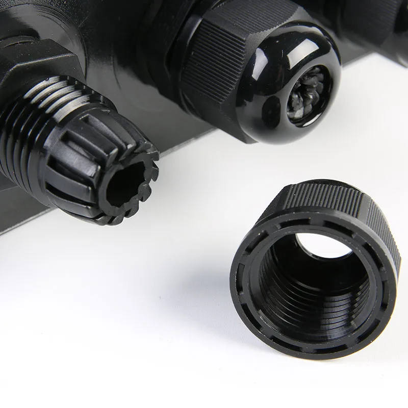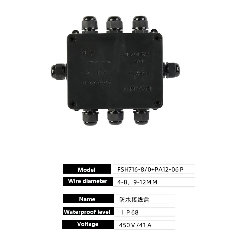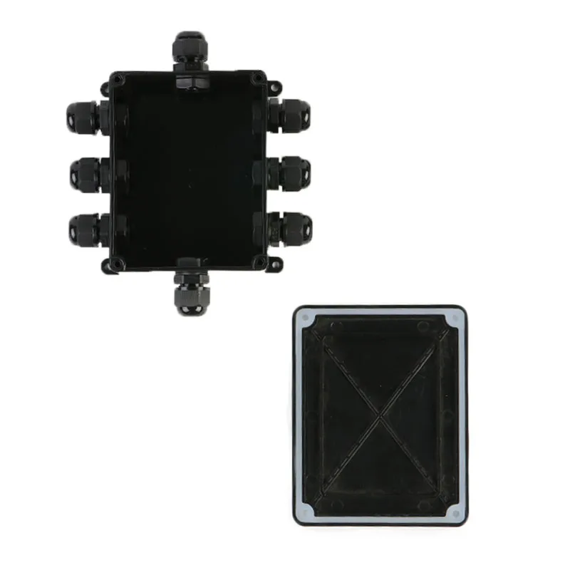 IP68 Black Waterproof Plastic Outdoor Cable Wire Connector Gland Electrical 8-Cable Junction Box with Terminal PC