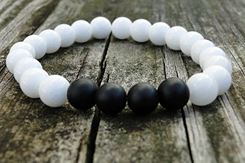 Black and White Onyx Bracelet | Mens Onyx Bracelet | Gemstone Bracelet | Womens Black and White | Yin and Yang | Onyx Beaded Bracelet 8mm