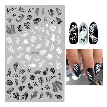 1PC 12.2*9.2cm 3D Black and white Leaf Flower Nail Art Stickers Geometric paste design Nail Decal Manicure Decorations