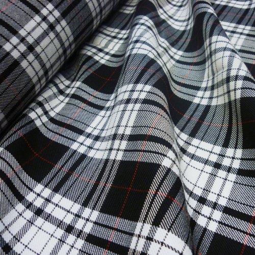 Black & White Poly Viscose Tartan Fabric (Per Metre) by Nortex Mill