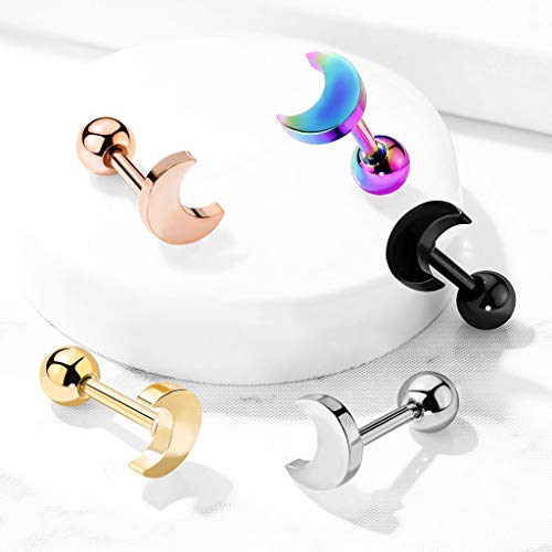BlackAmazement Orecchini in acciaio inox 316L con mezzaluna, luna, cervo, colore oro rosa, argento, nero, arcobaleno, da donna, Acciaio inossidabile,