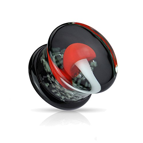 BlackAmazement, piercing dilatatore in vetro borosilicato a forma di fungo, rosso brillante e Vetro, cod. -