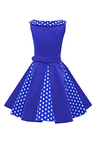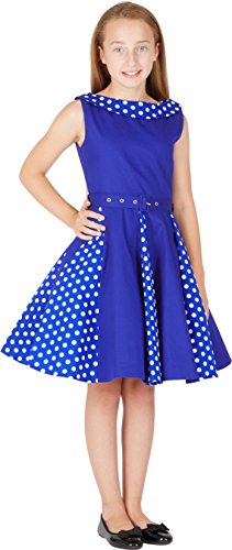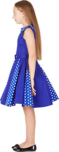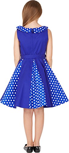 BlackButterfly Bambini Abito Vintage a Pois Anni '50 "Alexia (Blu Reale, 11-12 Anni)