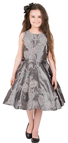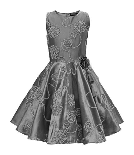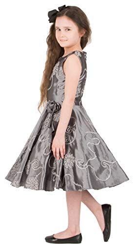 BlackButterfly Bambini Raso Abito Vintage Anni '50 'Audrey' Flora (Argento, 5-6 Anni)