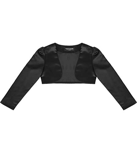 BlackButterfly Bambini Raso Manica Lunga Bolero Ragazze (Nero, 7-8 Anni)