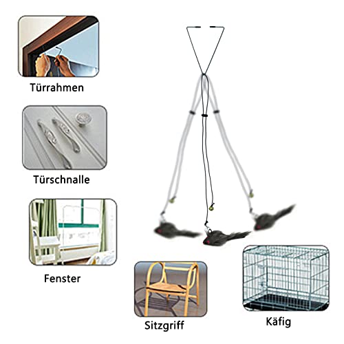 ️ 【Package】 Il nostro giocattolo da appendere per gatti contiene 7 diversi giocattoli a molla con campanelle, 1 molla colorata, 3 vermi, 1 peluche per mouse di ricambio, 1 sedia a molla e pesce. Il vostro gatto si agiterà e allo stesso tempo avrà un po' di movimento.