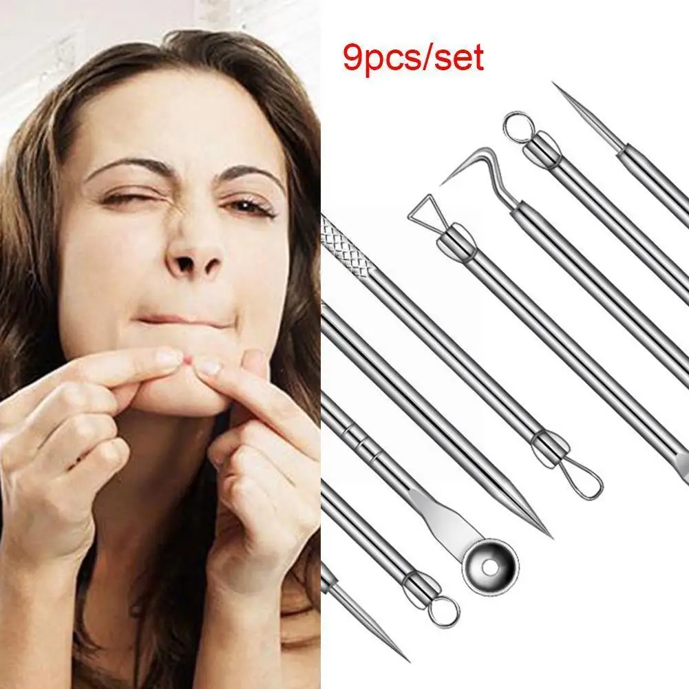9pcs Acne Blackhead Remover Needle Tools Set Blackhead Removal Pimple Extractor Blackspot Steel Skin Care Tool Tweezer K7N7
