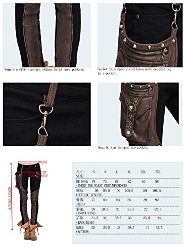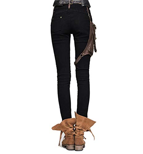 Blackmasksu Pantaloni punk da donna stile gotico patchwork matita leggings pantaloni stretti con piccolo marsupio, Nero, L