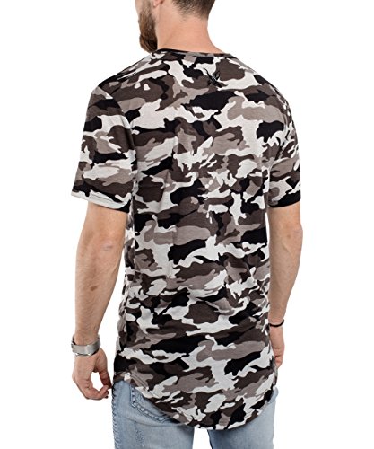 Blackskies Round Basic T-Shirt | Uomo Fashion Rotonda Maglietta Lunga Oversize Longshirt Lungo - Camouflage Midnight Small S