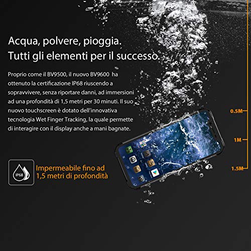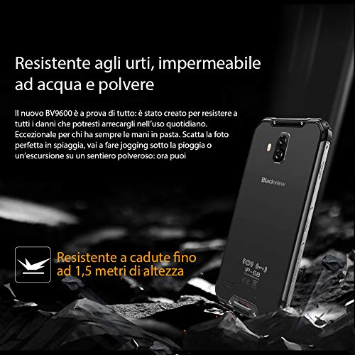 2019 - Blackview BV9600 4G Rugged Smartphone, cellulare impermeabile Android 9.0 IP68, Helio P70 da 4 GB + 64 GB, FHD da 6,21'' + Schermo AMOLED, SIM DUAL, NFC, 16 MP + 8 MP, carica wireless Nero