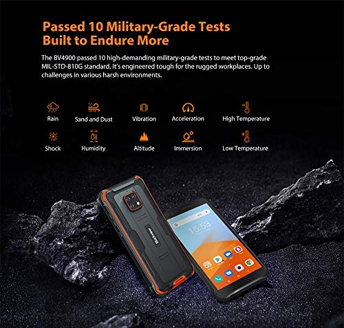 Blackview IP68 Rugged Smartphone 4G, BV4900 Android 10 Cellulare Robusto, 3GB RAM 32GB ROM Espansione da 256 GB, Fotocamera Impermeabile 5 MP + 8 MP, Doppia SIM GPS NFC, Batteria da 5580 mAh Arancia